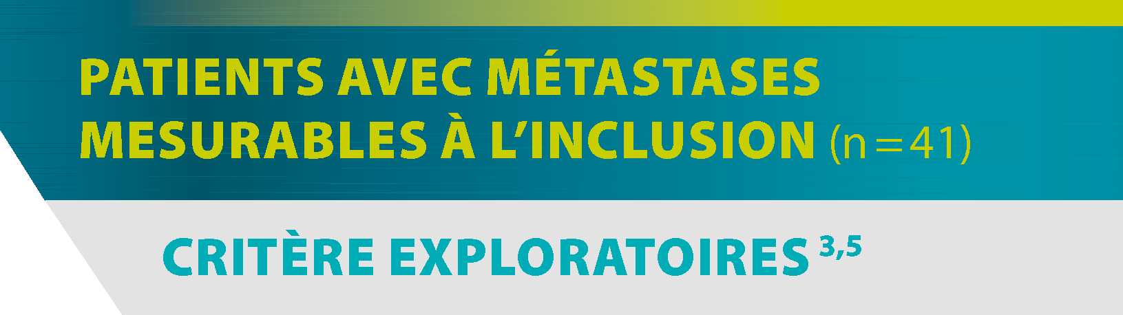 Selon l’analyse hiérarchisée réalisée, le premier critère secondaire de l’étude : Taux de réponse objective confirmée, n’étant pas significatif lors de la 1ère analyse intermédiaire, tous les critères secondaires suivants sont présentés à titre exploratoire.
