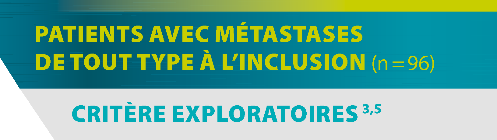 * Ces 4 critères secondaires (TRO, TROic, SSPic, SG) ont fait l’objetd’une analyse hiérarchique séquentielle. ** Définie par la durée entre la date de randomisation et la date de progression intracrânienne, de décès ou de radiothérapie pour le traitement d’une métastase cérébrale chez les patients ayant des métastases cérébrales à l’inclusion.